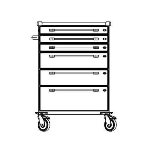 Konštrukcia vozíka môže byť oceľová, ošetrená šedou antimikrobiálnou farbou alebo v nehrdzavejúcom AISI304 prevedení. Vozík má antivibračnú výstuhu. Pracovná plocha vozíka z nehrdzavejúcej ocele AISI304 s 12 mm prelisom, ochrannými rohmi a nosnosťou 20 kg. Čelá zásuviek sú z kompaktného plastu (ABS), farba je voliteľná zo vzorkovníka. Zásuvky môžu byť klasické alebo určené na skladovanie MS košov. Zásuvky sú vybavené guličkovým plnovýsuvom, s doťahovaním a dotlmením. Nosnosť zásuviek je 20 kg. Zásuvky sú centrálne uzamykateľné. Produkt je vybavený: 3 x zásuvka veľkosti S, 2 x zásuvka veľkosti M, 1 x zásuvka veľkosti L. Vozík je vybavený aj oceľovým madlom, AISI304. Kolesá vozíka sú plastové, s plastovými nárazníkmi. Priemer kolies je 125 mm, z toho 2 s brzdou. Celková nosnosť výrobku je 150 kg.