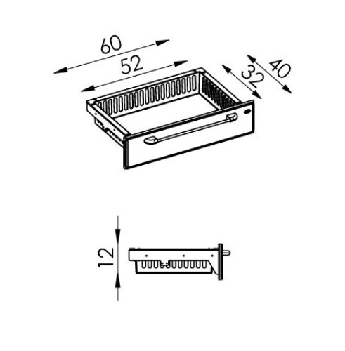 Kovový vozík z nehrdzavejúcej ocele AISI304. Konštrukcia je vybavená antivibračnou výstuhou. Vybavenie vozíka: 2 x plocha s 12 mm prelisom, nosnosť 50 kg, 3 x zásuvka veľkosti M (výška 120 mm), nosnosť 20 kg. Zásuvky sú prachotesné v MS prevedení. Vnútorný priestor je možné deliť priečkami. Čelo zásuvky je z kompaktného ABS plastu, farba je voliteľná zo vzorkovníka. Vozík má centrálne uzamykanie. Kolesá sú otočné, s plastovými nárazníkmi, priemeru 125 mm, z toho 2 s brzdou. Nosnosť výrobku je 160 kg.