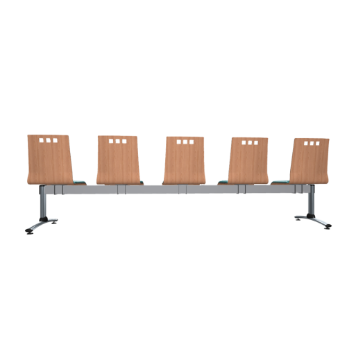 Elegantný päťsedák s dreveným ergonomicky tvarovaným sedákom. Sedák je možné dodať s rôznym látkovým čalúnením. Zákazník má možnosť voľby dekoru dreva, farby a prevedenia čalúnenia. Šírka sedadla je 400 mm. Konštrukcia pod sedákmi je šedej farby a nohy sú chrómované. Na prianie zákazníka je možné tovar modifikovať, tiež je možné vymeniť sedák za odkladací stolík. Nosnosť je 130 kg na jedno sedacie miesto.