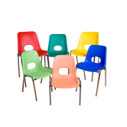 Stolička s chrómovaným rámom a plastovými časťami určená pre deti. Stolička je stohovateľná po 10 ks a je určená pre materské školy alebo pre domáce použitie. Farbu plastových dielov je možné vybrať z viacerých odtieňov, viď. obrázky produktu. Nosnosť stoličky je 80 kg. Stoličku je možné objednať vo viacerých veľkostných kategóriách podľa výšky dieťaťa.