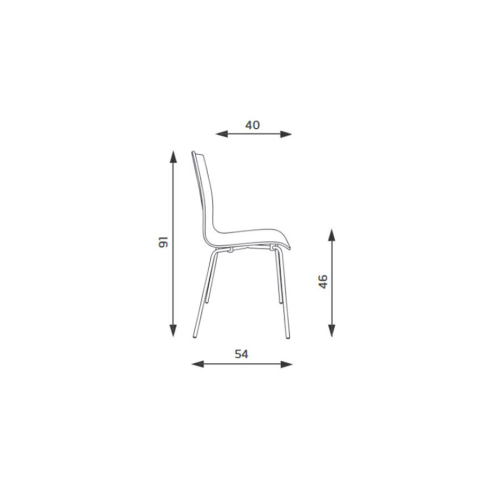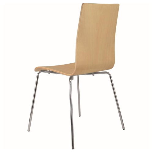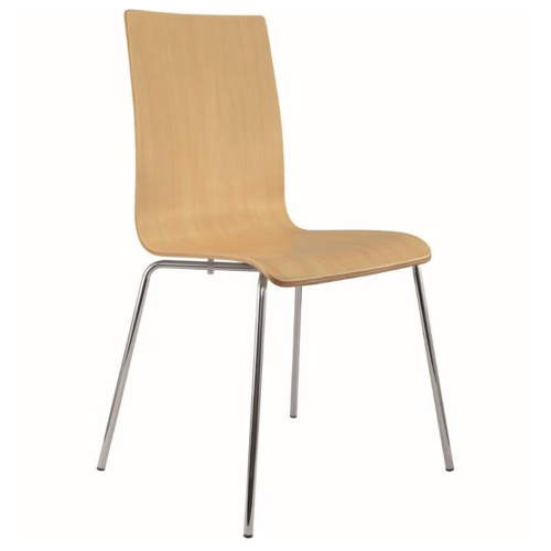 Jednoduchá stolička do jedálne s chrómovanými nohami a dreveným sedákom s opierkou. Drevené časti sú z tvarovanej preglejky. Farby drevených častí sú voliteľné viď. obrázky produktu. Tiež je možné objednať stoličku s čiernymi alebo šedými nohami. Nosnosť stoličky je 120 kg a sú stohovateľné po 5 ks.