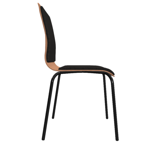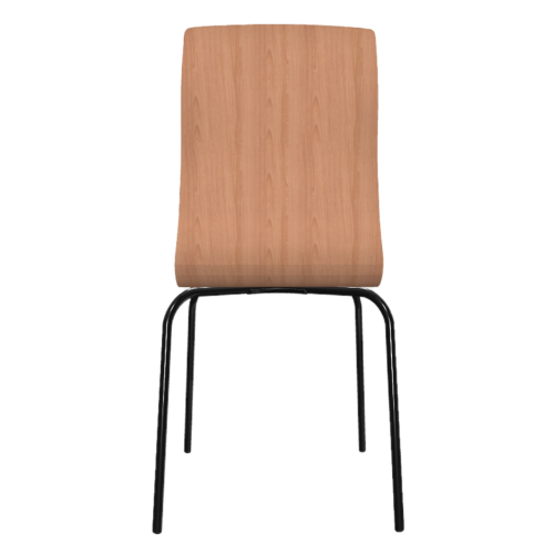 Jednoduchá stolička do jedálne s čiernymi nohami a dreveným sedákom s opierkou. Drevené časti sú z tvarovanej preglejky. Farby drevených častí a čalúnenia sú voliteľné viď. obrázky produktu. Za príplatok je možné objednať stoličku aj s chrómovanými alebo šedými nohami. Nosnosť stoličky je 120 kg a sú stohovateľné po 5 ks.