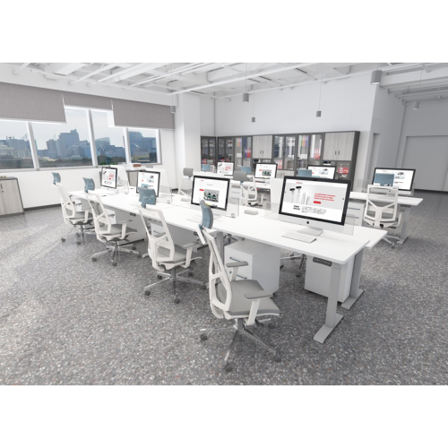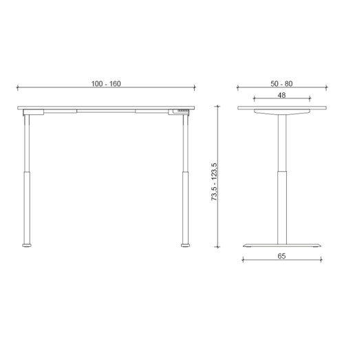 Tento stôl je postavený na veľmi stabilnom a robustnom ráme s výrazným zosilnením a stredovou fixáciou k doske, čo zaručuje dlhodobú spoľahlivosť a odolnosť. Jeho výška môže byť nastavená medzi 735 a 1235 mm, pričom rýchlosť nastavenia je pôsobivých 25 mm za sekundu, čo znamená, že vám nezaberie veľa času prispôsobiť si stôl podľa vašich potrieb.