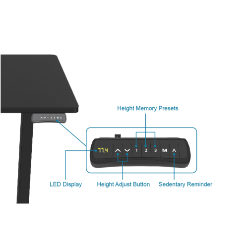 Ovládanie stola je jednoduché a inteligentné, s možnosťou uloženia až 4 pamäťových nastavení a antikolíznej funkciou, ktorá chráni pred nechcenými kolíziami.