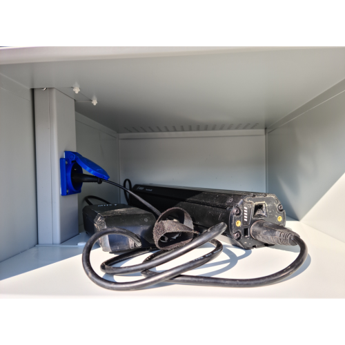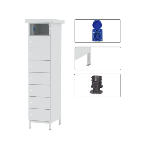 Úschovná skriňa s 230 V zástrčkami. Detailný popis