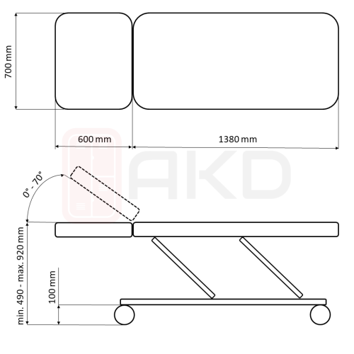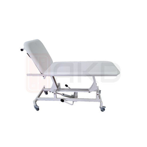 Vyšetrovacie lehátko s hydraulicky nastaviteľnou výškou a sklonom opierky, vybavené 100 mm kolieskami s brzdou. Výška plochy na ležanie je nastaviteľná hydraulicky od 490 mm do 920 mm. Chrbtová opierka je nastaviteľná plynovým piestom. Lehátko je dvojdielne. Rozmer plochy na ležanie je 1980 mm x 700 mm. Koženkový poťah a výplň zo zdravotne nezávadných materiálov. Farebné prevedenie konštrukcie je biele, koženkový poťah je voliteľný viď. obrázky produktu. Nosnosť výrobku je 160 kg.