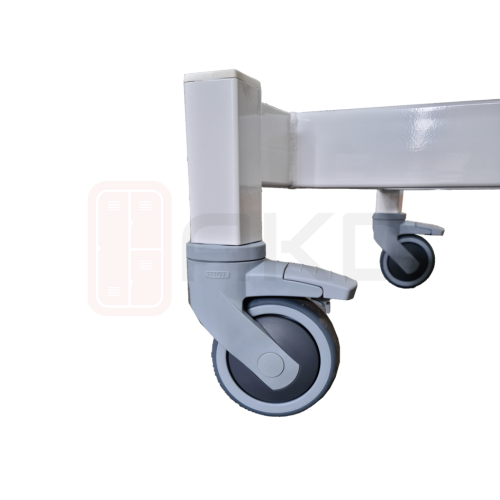 Vyšetrovacie ležadlo s nastaviteľnou výškou, na kolieskach.