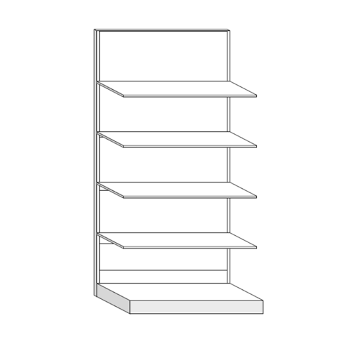 Jednostranný regál pre predajne, vhodný napríklad do potravín a iných prevádzok. Vyznačuje sa jednoduchou montážou bez použitia náradia. Montáž aj demontáž regálov je veľmi jednoduchá. Z regálov je možné vytvárať na seba nadväzujúce rady, pomocou základného a prídavného regálu. Regály je možné objednať v rôznych výškach, šírkach a hĺbkach. K dispozícii je aj rôzne doplnkové príslušenstvo, ako sú napr.: držiaky cenoviek, perforované zadné steny a pod. V bielej farbe sú regály zvyčajne k rýchlemu dodaniu. Možné je objednať regály aj v iných farebných prevedeniach za príplatok. Kontaktuje nás a pripravíme ponuku podľa vašich požiadaviek.