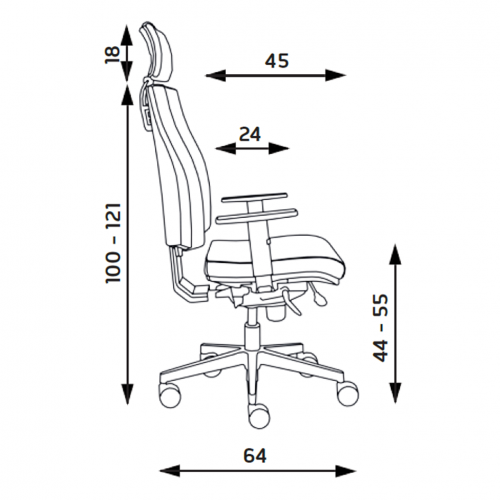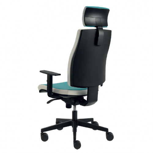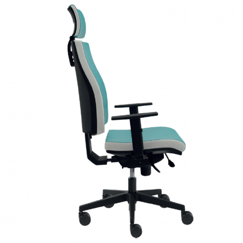 Ergonomicky tvarovaná kancelárska stolička čalúnená látkou. Čalúnenie je bakteriostatické, vhodné na použitie v zdravotníctve, ako stolička pre lekára alebo sestru. Pod poťahom stoličky je výplň z injektovanej peny. Hrany sedadla a operadla sú s prešitím. Plastové diely a podvozok sú v čiernej farbe, s kolieskami priemeru 65 mm. Stolička je vybavená opierkami rúk a hlavy. Nosnosť stoličky je 150 kg.