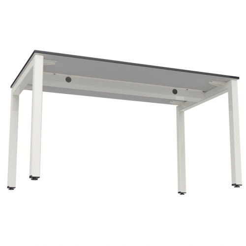 Moderný kancelársky stôl šírky 1400 mm a hĺbky 800 mm. Základ stola tvorí masívna kovová konštrukcia z 50 x 50 mm profilov a melamínová doska, ktorú si môžete objednať vo viacerých odtieňoch. Koncovky nôh sú nastaviteľné, viete tak eliminovať nerovnosti podlahy (výška od 745 do 770 mm). Vo výbave je aj držiak na kabeláž a nabíjačky, ktorý je pod doskou stola. Stôl je prispôsobiteľný prostredníctvom širokej ponuky príslušenstva. Stôl sa dodáva demontovaný, ale montáž je jednoduchá a zvládne ju každý.