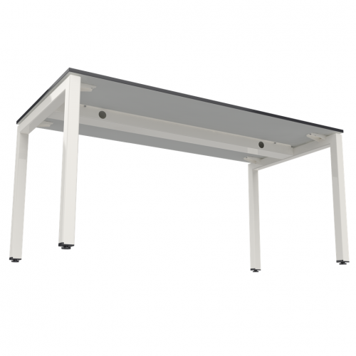 Moderný kancelársky stôl šírky 1600 mm a hĺbky 800 mm. Základ stola tvorí masívna kovová konštrukcia z 50 x 50 mm profilov a melamínová doska, ktorú si môžete objednať vo viacerých odtieňoch. Koncovky nôh sú nastaviteľné, viete tak eliminovať nerovnosti podlahy (výška od 745 do 770 mm). Vo výbave je aj držiak na kabeláž a nabíjačky, ktorý je pod doskou stola. Stôl je prispôsobiteľný prostredníctvom širokej ponuky príslušenstva. Stôl sa dodáva demontovaný, ale montáž je jednoduchá a zvládne ju každý.