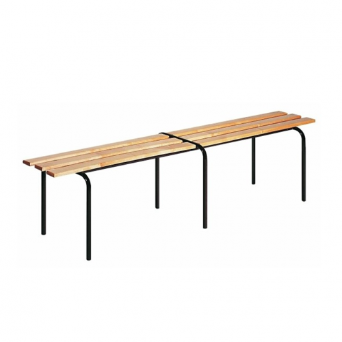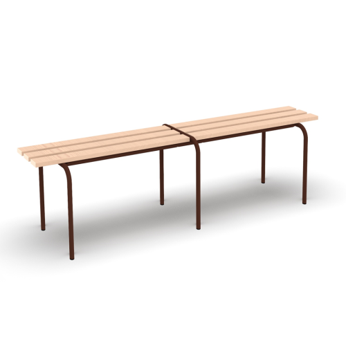 Kovová šatňová lavička šírky 2000 mm s trubkovým rámom a drevenými doskami.