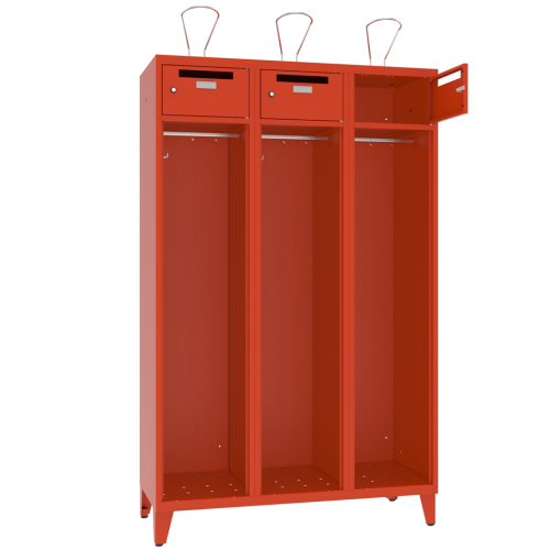 Hasičská kovová skriňa MSS je nevyhnutnou súčasťou vybavenia každej hasičskej stanice, navrhnutá tak, aby poskytovala rýchly a pohodlný prístup k odevom a hasičskej výstroji. Jej premyslená konštrukcia zaisťuje poriadok a organizáciu – viacero háčikov, šatníková tyč a vyhradený držiak na prilbu umožňujú praktické uloženie vybavenia. Uzamykateľná priehradka s vhadzovacím otvorom umožňuje rýchle uloženie cenných predmetov bez nutnosti otvárať dvere.
