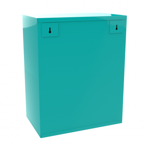Závesná kovová skriňa s magnetickým uzatváraním a so sklenenými policami. Skriňu je možné používať ako lekárničku.