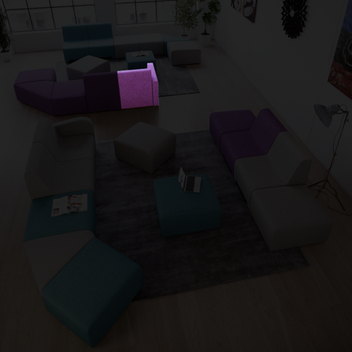 Celočalúnené modulárne sedenie. Z jednotlivých prvkov Rubico je možné vyskladať zostavy nábytku na sedenie, podľa individuálnych požiadaviek. Nosná konštrukcia je drevená, obalená polyuretánovou výplňou hrúbky 45 mm. Výrobok má nastaviteľné koncovky nôh od 0 - 10 mm, pre vyrovnanie nerovností. Nosnosť výrobku je 120 kg. Výška sedenia je 400 mm.