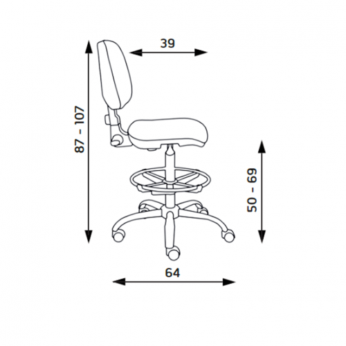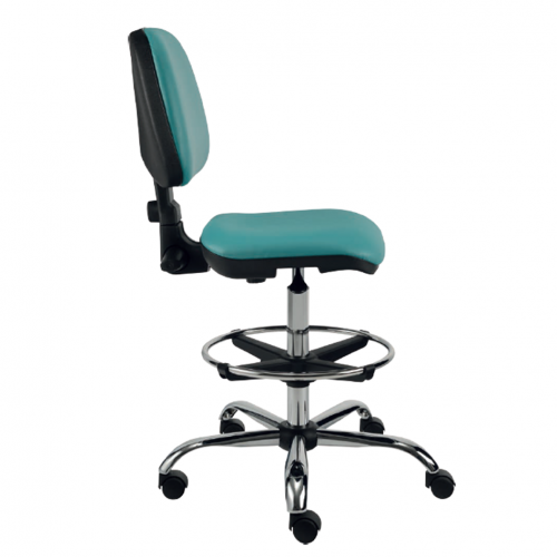 Pracovná stolička s vysokým piestom vhodná pre použitie v zdravotníctve. Poťah stoličky je koženkový. Stolička sa dodáva aj s aretačným kruhom, prevedenie ako na obrázku. Nosnosť stoličky je 100 kg.