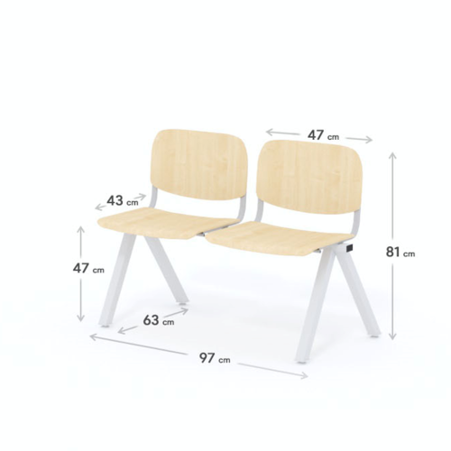 Dvojmiestna lavica do čakárne so zváraným kovovým rámom a drevenými sedákmi. Vďaka zvarenej konštrukcii je lavička veľmi odolná a po doručení nemusíte výrobok skladať. Navyše pre dlhšiu trvácnosť, je pod sedákom umiestnená jedna výstuha naviac. Prevedenie konštrukcie nedovoľuje lavici dotýkať sa steny, tým bráni jej poškodeniu. Lavica je vybavená nastaviteľnými koncovkami nôh - viete dať lavicu do roviny aj pri krivej podlahe. Produkt je vyrobený na Slovensku.