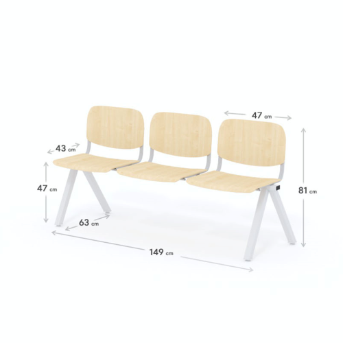 Trojmiestna lavica do čakárne so zváraným kovovým rámom a drevenými sedákmi. Vďaka zvarenej konštrukcii je lavička veľmi odolná a po doručení nemusíte výrobok skladať. Navyše pre dlhšiu trvácnosť, je pod sedákom umiestnená jedna výstuha naviac. Prevedenie konštrukcie nedovoľuje lavici dotýkať sa steny, tým bráni jej poškodeniu. Lavica je vybavená nastaviteľnými koncovkami nôh - viete dať lavicu do roviny aj pri krivej podlahe. Produkt je vyrobený na Slovensku.