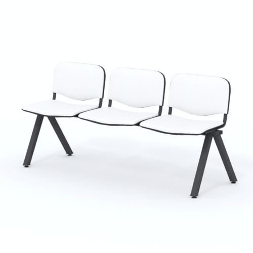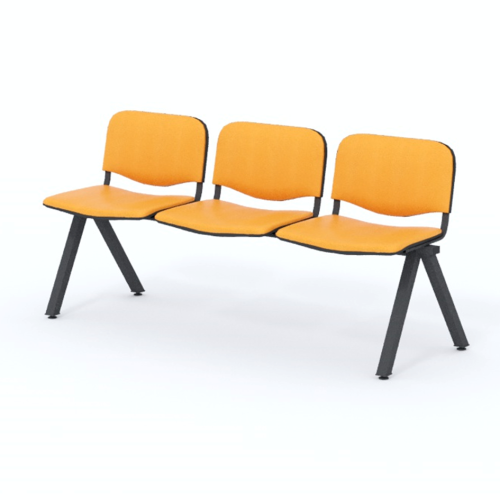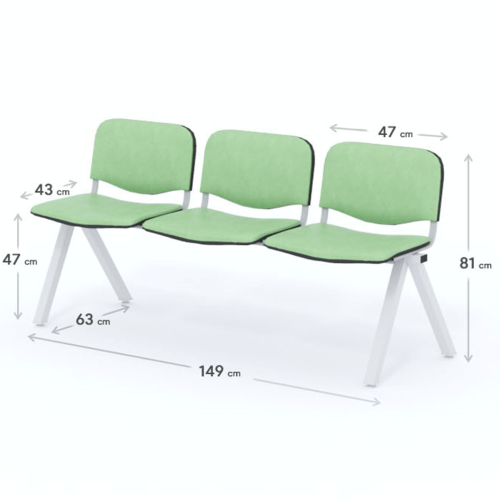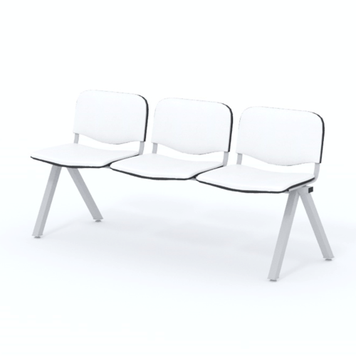 Trojmiestna lavica do čakárne so zváraným kovovým rámom a sedákmi čalúnenými koženkou. Vďaka zvarenej konštrukcii je lavička veľmi odolná a po doručení nemusíte výrobok skladať. Navyše pre dlhšiu trvácnosť, je pod sedákom umiestnená jedna výstuha naviac. Prevedenie konštrukcie nedovoľuje lavici dotýkať sa steny, tým bráni jej poškodeniu. Lavica je vybavená nastaviteľnými koncovkami nôh - viete dať lavicu do roviny aj pri krivej podlahe. Produkt je vyrobený na Slovensku.
