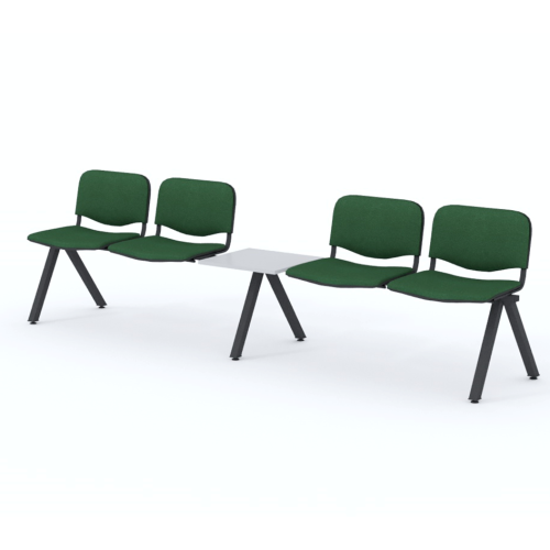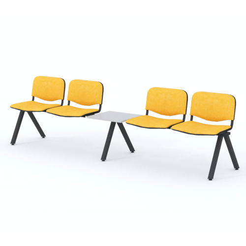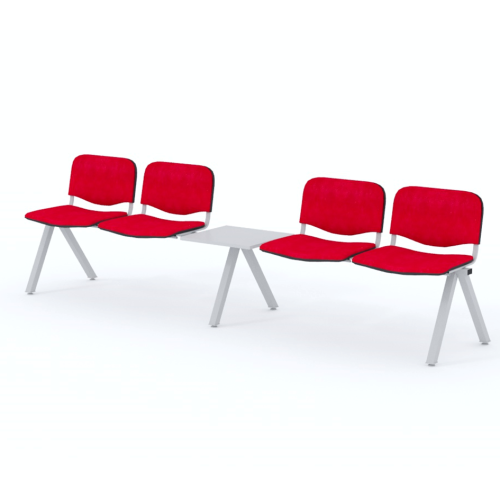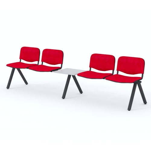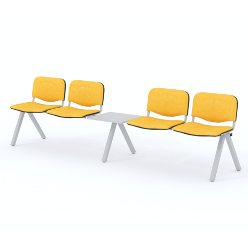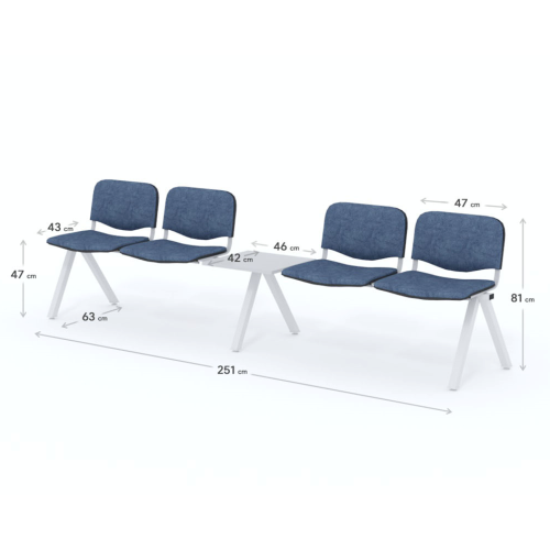 Štvormiestna lavica do čakárne so zváraným kovovým rámom, čalúnenými sedákmi a dreveným stolíkom vyrobeným zo šedej drevotriesky (za príplatok sú možné aj iné farby). Vďaka zvarenej konštrukcii je lavička veľmi odolná a po doručení nemusíte výrobok skladať. Navyše pre dlhšiu trvácnosť, je pod sedákom umiestnená jedna výstuha naviac. Prevedenie konštrukcie nedovoľuje lavici dotýkať sa steny, tým bráni jej poškodeniu. Lavica je vybavená nastaviteľnými koncovkami nôh - viete dať lavicu do roviny aj pri krivej podlahe. Produkt je vyrobený na Slovensku.