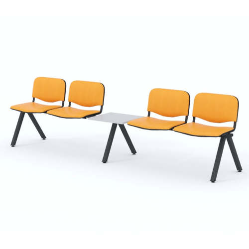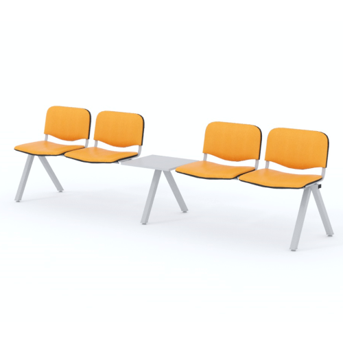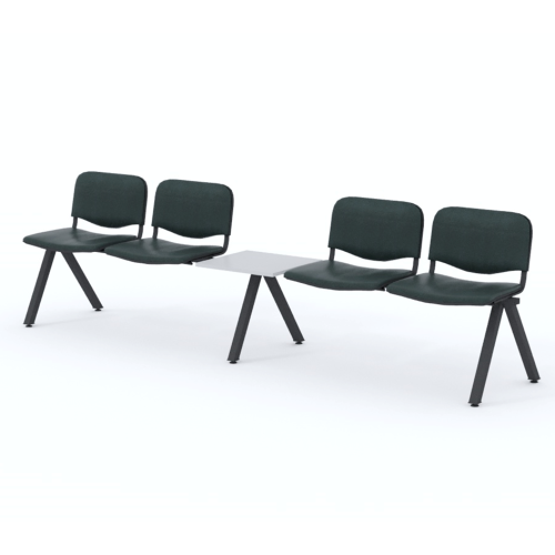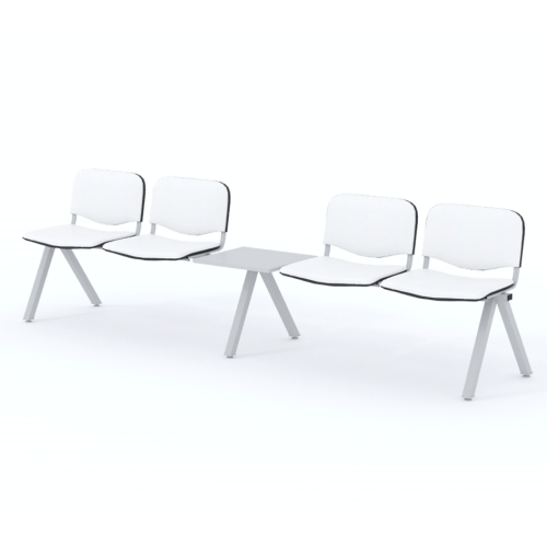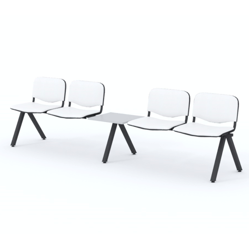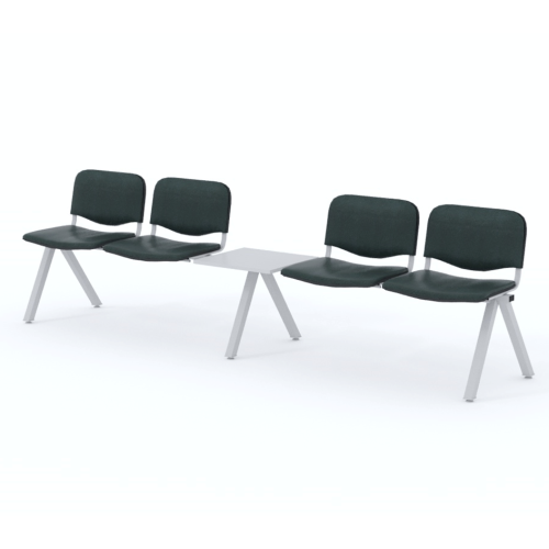 Štvormiestna lavica do čakárne so zváraným kovovým rámom, koženkovými sedákmi a dreveným stolíkom vyrobeným zo šedej drevotriesky (za príplatok sú možné aj iné farby). Vďaka zvarenej konštrukcii je lavička veľmi odolná a po doručení nemusíte výrobok skladať. Navyše pre dlhšiu trvácnosť, je pod sedákom umiestnená jedna výstuha naviac. Prevedenie konštrukcie nedovoľuje lavici dotýkať sa steny, tým bráni jej poškodeniu. Lavica je vybavená nastaviteľnými koncovkami nôh - viete dať lavicu do roviny aj pri krivej podlahe. Produkt je vyrobený na Slovensku.