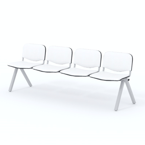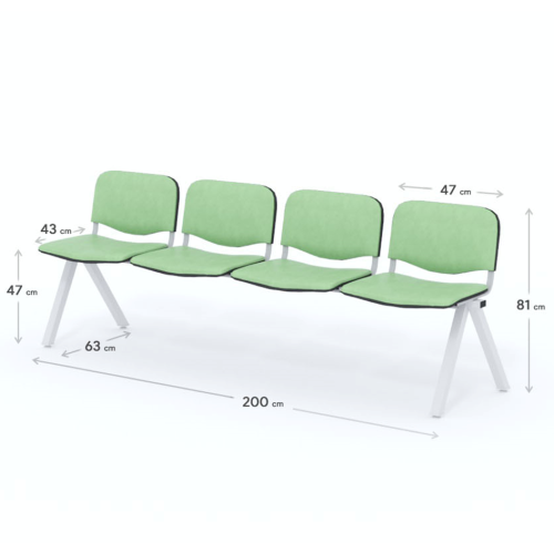 Štvormiestna lavica do čakárne so zváraným kovovým rámom a sedákmi čalúnenými koženkou. Vďaka zvarenej konštrukcii je lavička veľmi odolná a po doručení nemusíte výrobok skladať. Navyše pre dlhšiu trvácnosť, je pod sedákom umiestnená jedna výstuha naviac. Prevedenie konštrukcie nedovoľuje lavici dotýkať sa steny, tým bráni jej poškodeniu. Lavica je vybavená nastaviteľnými koncovkami nôh - viete dať lavicu do roviny aj pri krivej podlahe. Produkt je vyrobený na Slovensku.