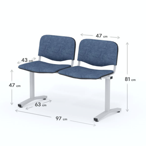 Dvojmiestna lavica do čakárne so zváraným kovovým rámom a čalúnenými sedákmi. Vďaka zvarenej konštrukcii je lavička veľmi odolná a po doručení nemusíte výrobok skladať. Navyše pre dlhšiu trvácnosť, je pod sedákom umiestnená jedna výstuha naviac. Prevedenie konštrukcie nedovoľuje lavici dotýkať sa steny, tým bráni jej poškodeniu. Lavica je vybavená nastaviteľnými koncovkami nôh - viete dať lavicu do roviny aj pri krivej podlahe. Produkt je vyrobený na Slovensku.