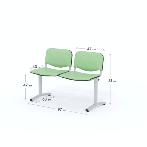 Dvojmiestna lavica do čakárne so zváraným kovovým rámom a sedákmi čalúnenými koženkou. Vďaka zvarenej konštrukcii je lavička veľmi odolná a po doručení nemusíte výrobok skladať. Navyše pre dlhšiu trvácnosť, je pod sedákom umiestnená jedna výstuha naviac. Prevedenie konštrukcie nedovoľuje lavici dotýkať sa steny, tým bráni jej poškodeniu. Lavica je vybavená nastaviteľnými koncovkami nôh - viete dať lavicu do roviny aj pri krivej podlahe. Produkt je vyrobený na Slovensku.