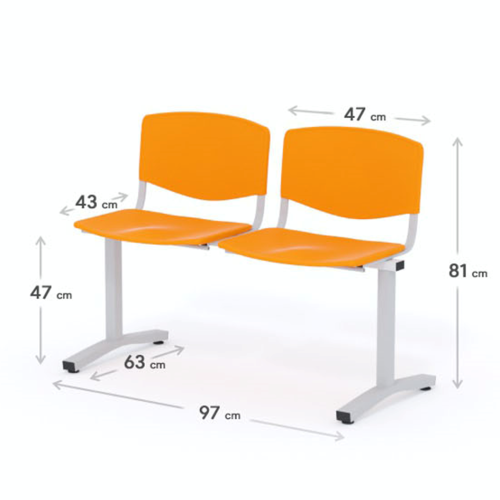 Dvojmiestna lavica do čakárne so zváraným kovovým rámom a plastovými sedákmi. Vďaka zvarenej konštrukcii je lavička veľmi odolná a po doručení nemusíte výrobok skladať. Navyše pre dlhšiu trvácnosť, je pod sedákom umiestnená jedna výstuha naviac. Prevedenie konštrukcie nedovoľuje lavici dotýkať sa steny, tým bráni jej poškodeniu. Lavica je vybavená nastaviteľnými koncovkami nôh - viete dať lavicu do roviny aj pri krivej podlahe. Produkt je vyrobený na Slovensku.