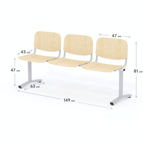 Trojmiestna lavica do čakárne so zváraným kovovým rámom a drevenými sedákmi. Vďaka zvarenej konštrukcii je lavička veľmi odolná a po doručení nemusíte výrobok skladať. Navyše pre dlhšiu trvácnosť, je pod sedákom umiestnená jedna výstuha naviac. Prevedenie konštrukcie nedovoľuje lavici dotýkať sa steny, tým bráni jej poškodeniu. Lavica je vybavená nastaviteľnými koncovkami nôh - viete dať lavicu do roviny aj pri krivej podlahe. Produkt je vyrobený na Slovensku.