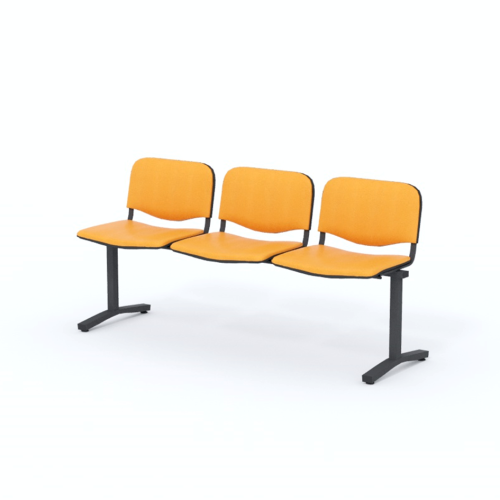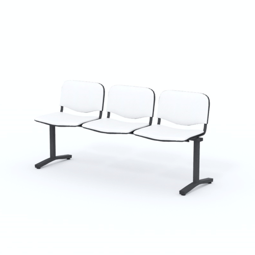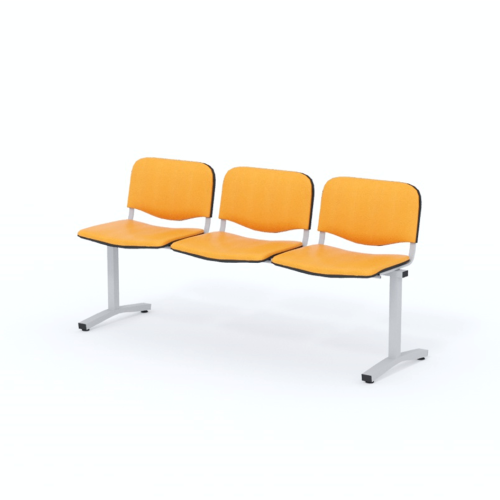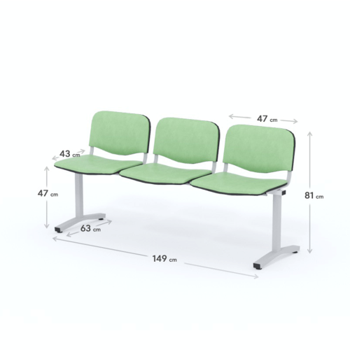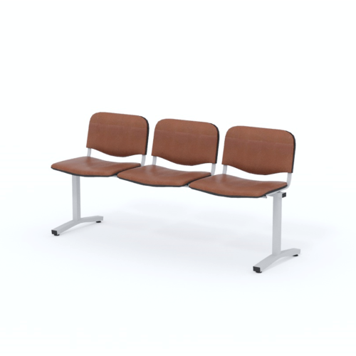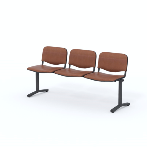 Trojmiestna lavica do čakárne so zváraným kovovým rámom a sedákmi čalúnenými koženkou. Vďaka zvarenej konštrukcii je lavička veľmi odolná a po doručení nemusíte výrobok skladať. Navyše pre dlhšiu trvácnosť, je pod sedákom umiestnená jedna výstuha naviac. Prevedenie konštrukcie nedovoľuje lavici dotýkať sa steny, tým bráni jej poškodeniu. Lavica je vybavená nastaviteľnými koncovkami nôh - viete dať lavicu do roviny aj pri krivej podlahe. Produkt je vyrobený na Slovensku.