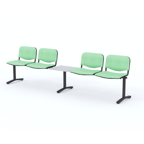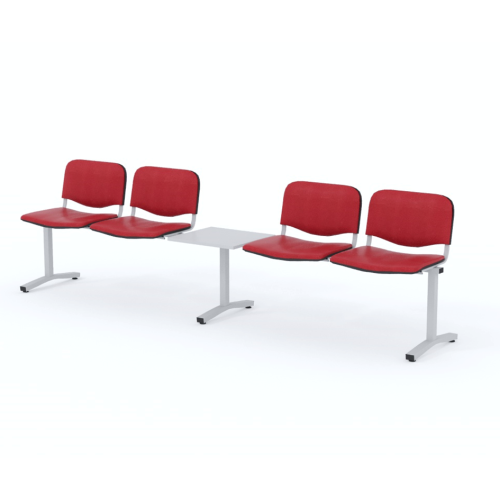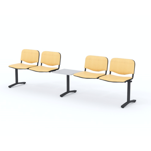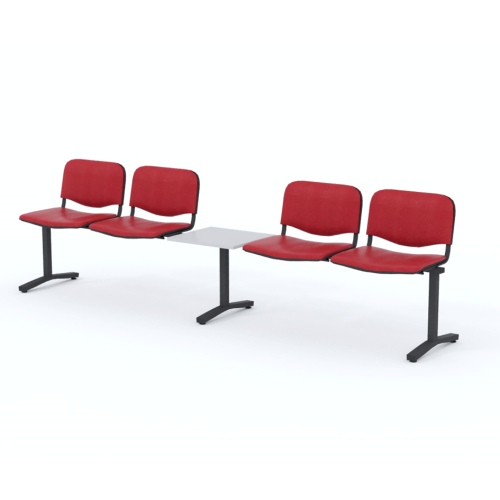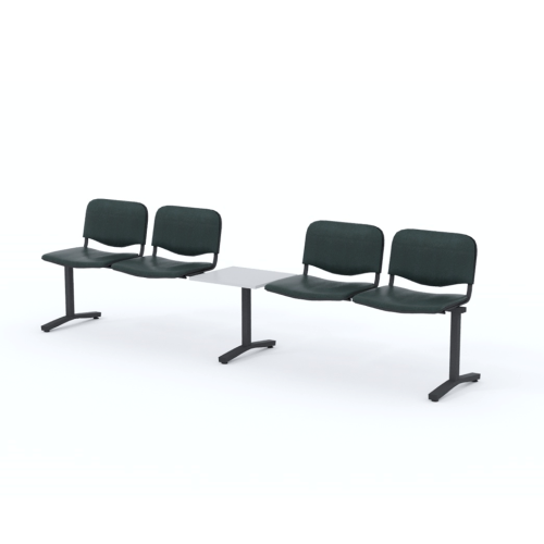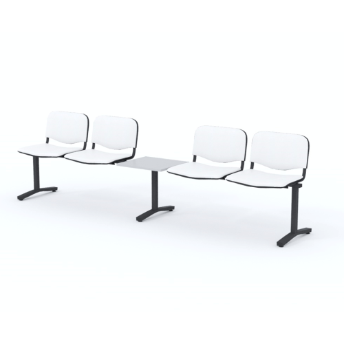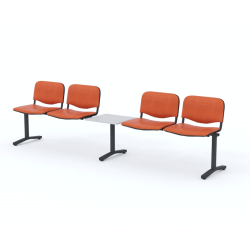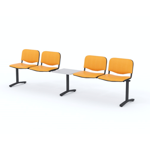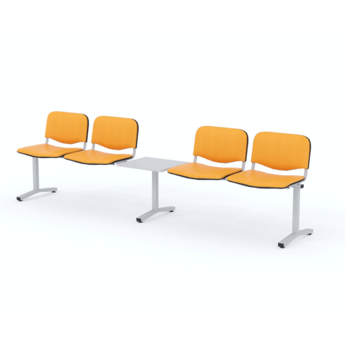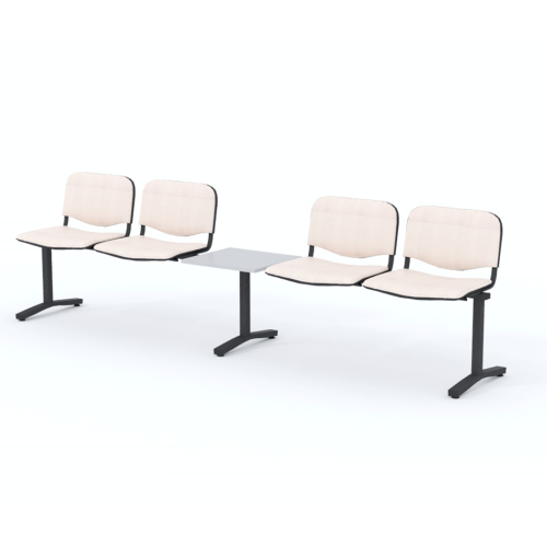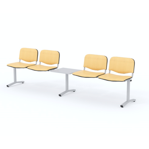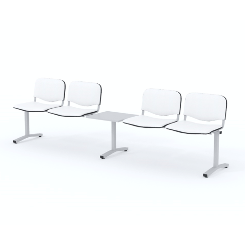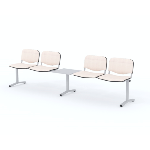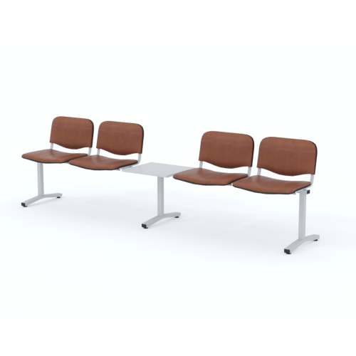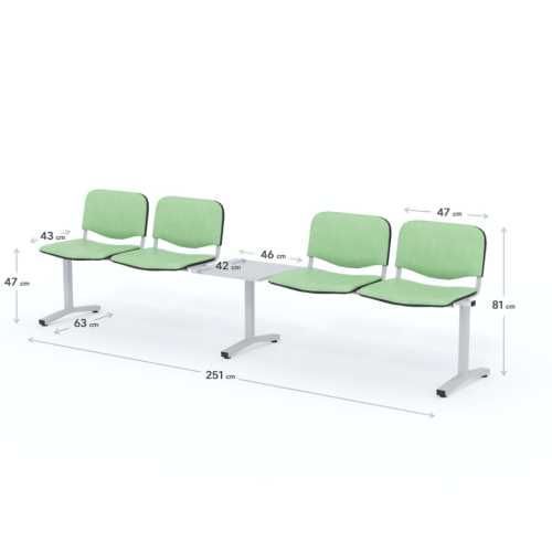 Štvormiestna lavica do čakárne so zváraným kovovým rámom, koženkovými sedákmi a dreveným stolíkom vyrobeným zo šedej drevotriesky (za príplatok sú možné aj iné farby). Vďaka zvarenej konštrukcii je lavička veľmi odolná a po doručení nemusíte výrobok skladať. Navyše pre dlhšiu trvácnosť, je pod sedákom umiestnená jedna výstuha naviac. Prevedenie konštrukcie nedovoľuje lavici dotýkať sa steny, tým bráni jej poškodeniu. Lavica je vybavená nastaviteľnými koncovkami nôh - viete dať lavicu do roviny aj pri krivej podlahe. Produkt je vyrobený na Slovensku.