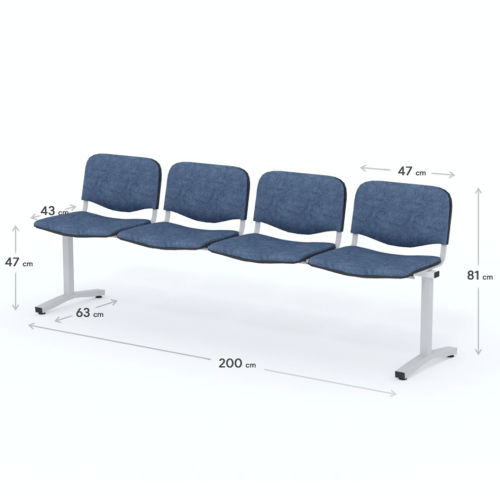 Štvormiestna lavica do čakárne so zváraným kovovým rámom a čalúnenými sedákmi. Vďaka zvarenej konštrukcii je lavička veľmi odolná a po doručení nemusíte výrobok skladať. Navyše pre dlhšiu trvácnosť, je pod sedákom umiestnená jedna výstuha naviac. Prevedenie konštrukcie nedovoľuje lavici dotýkať sa steny, tým bráni jej poškodeniu. Lavica je vybavená nastaviteľnými koncovkami nôh - viete dať lavicu do roviny aj pri krivej podlahe. Produkt je vyrobený na Slovensku.