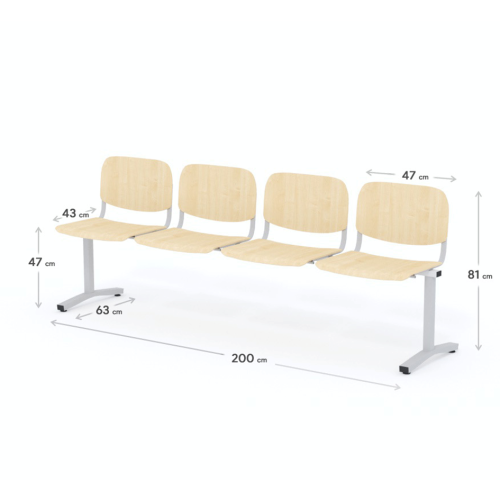 Štvormiestna lavica do čakárne so zváraným kovovým rámom a drevenými sedákmi. Vďaka zvarenej konštrukcii je lavička veľmi odolná a po doručení nemusíte výrobok skladať. Navyše pre dlhšiu trvácnosť, je pod sedákom umiestnená jedna výstuha naviac. Prevedenie konštrukcie nedovoľuje lavici dotýkať sa steny, tým bráni jej poškodeniu. Lavica je vybavená nastaviteľnými koncovkami nôh - viete dať lavicu do roviny aj pri krivej podlahe. Produkt je vyrobený na Slovensku.