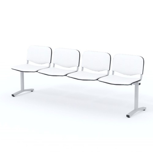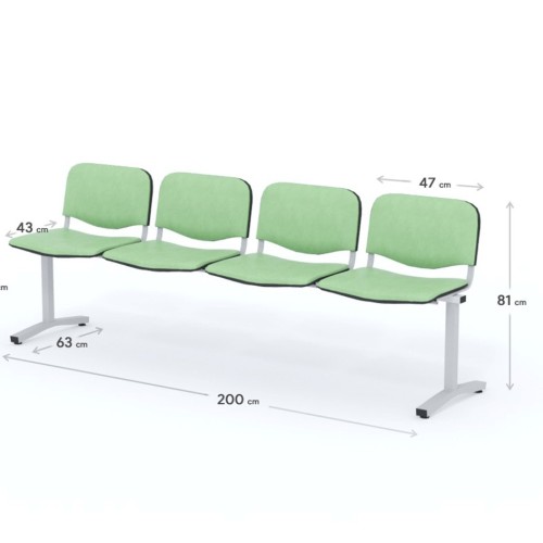 Štvormiestna lavica do čakárne so zváraným kovovým rámom a sedákmi čalúnenými koženkou. Vďaka zvarenej konštrukcii je lavička veľmi odolná a po doručení nemusíte výrobok skladať. Navyše pre dlhšiu trvácnosť, je pod sedákom umiestnená jedna výstuha naviac. Prevedenie konštrukcie nedovoľuje lavici dotýkať sa steny, tým bráni jej poškodeniu. Lavica je vybavená nastaviteľnými koncovkami nôh - viete dať lavicu do roviny aj pri krivej podlahe. Produkt je vyrobený na Slovensku.
