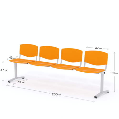 Štvormiestna lavica do čakárne so zváraným kovovým rámom a plastovými sedákmi. Vďaka zvarenej konštrukcii je lavička veľmi odolná a po doručení nemusíte výrobok skladať. Navyše pre dlhšiu trvácnosť, je pod sedákom umiestnená jedna výstuha naviac. Prevedenie konštrukcie nedovoľuje lavici dotýkať sa steny, tým bráni jej poškodeniu. Lavica je vybavená nastaviteľnými koncovkami nôh - viete dať lavicu do roviny aj pri krivej podlahe. Produkt je vyrobený na Slovensku.