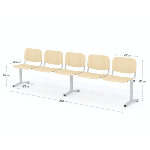 Päťmiestna lavica do čakárne so zváraným kovovým rámom a drevenými sedákmi. Vďaka zvarenej konštrukcii je lavička veľmi odolná a po doručení nemusíte výrobok skladať. Navyše pre dlhšiu trvácnosť, je pod sedákom umiestnená jedna výstuha naviac. Prevedenie konštrukcie nedovoľuje lavici dotýkať sa steny, tým bráni jej poškodeniu. Lavica je vybavená nastaviteľnými koncovkami nôh - viete dať lavicu do roviny aj pri krivej podlahe. Produkt je vyrobený na Slovensku.