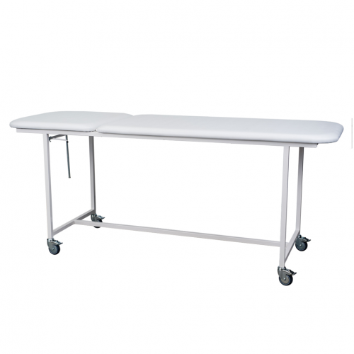 Vyšetrovací stôl na kolieskach má polohovateľnú hlavovú opierku. Priemer koliesok je 75 mm, brzdené. Konštrukcia je z uzatvorených profilov. Nosnosť konštrukcie je 160 kg. Koženkový poťah a výplň zo zdravotne nezávadných materiálov. Farebné prevedenie konštrukcie je biele. Farba koženkového poťahu je voliteľná bez príplatku, viď. obrázky produktu. Za príplatok je tiež možné doobjednať konzolu na uchytenie rolky papiera alebo inú farbu konštrukcie.