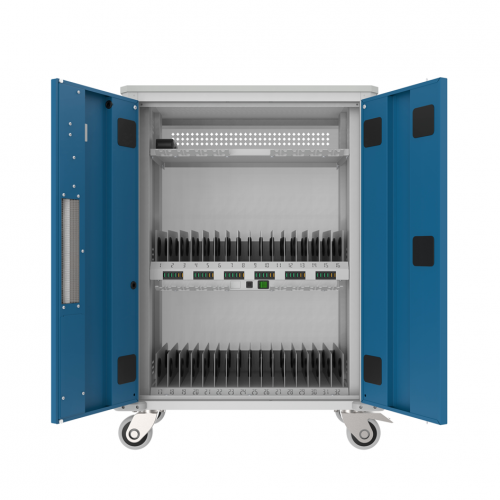 Vozík je vybavený špeciálnym držiakom, do ktorého sa vkladajú zariadenia. Celková kapacita je zabezpečená pre 32 tabletov až do veľkosti 13 palcov, teda 24 x 310 x 295 mm. Všetky oddelenia sú očíslované a vybavené signalizačnou LED diódou. Vozík obsahuje aj oddelenie pre prenosný počítač s konektorom. Vo vozíku sú inštalované zásuvky: 2 x 230 V AC, 24 x USB-A AiPower DC 5V 9.6A (Max), 12 x USB-A Qualcomm Quick Charge ports. Maximálny výkon je 1380 W.