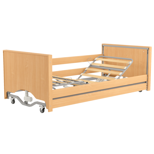 Posteľ s ozdobnými drevenými koncami. Je elektricky nastaviteľná posteľ s reguláciu výšky a možnosťou polohovania. Lôžko má štvorstĺpovú konštrukciu. Toto riešenie zaručuje väčšiu stabilitu postele. Pre pohodlie pri používaní bola poloha bočníc výrazne znížená, aby sa uľahčilo vstávanie a sedenie na posteli. Zavedené zmeny umožnili zmenšiť celkovú dĺžku postele – vďaka čomu je kompaktnejšia a vhodná na použitie v miestnostiach s obmedzeným priestorom. Na zaistenie bezpečnosti a pohodlia pacientov ponúka posteľ extrémne nízku polohu plošiny matraca.