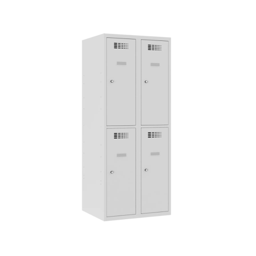 Kovový šatník šírky 600 mm s krátkymi dverami a zníženou výškou. Skriňa je uzamykateľná a dodáva sa s 2 kľúčmi pre každé dvere v štandardnom vyhotovení. Bez príplatku je možné objednať otočný uzáver na visiaci zámok. Za príplatok je možné objednať iný typ uzamykania (napr. kódovací zámok) alebo generálny kľúč. Vnútorné vybavenie zahŕňa tyč s dvoma dvojháčikmi v tvare kotvy na zavesenie oblečenia a samolepiaci držiak na menovku. Skriňa je zváraná, nie je nutná jej montáž, čo jej dodáva pevnosť a stabilitu.