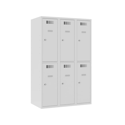 Kovový šatník šírky 900 mm s krátkymi dverami a zníženou výškou. Skriňa je uzamykateľná a dodáva sa s 2 kľúčmi pre každé dvere v štandardnom vyhotovení. Bez príplatku je možné objednať otočný uzáver na visiaci zámok. Za príplatok je možné objednať iný typ uzamykania (napr. kódovací zámok) alebo generálny kľúč. Vnútorné vybavenie zahŕňa tyč s dvoma dvojháčikmi v tvare kotvy na zavesenie oblečenia a samolepiaci držiak na menovku. Skriňa je zváraná, nie je nutná jej montáž, čo jej dodáva pevnosť a stabilitu.