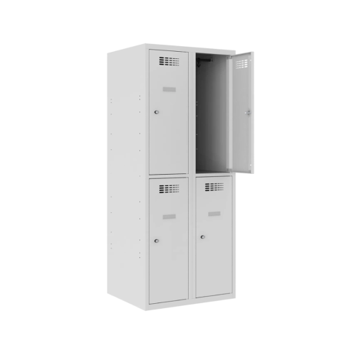 Kovový šatník šírky 800 mm s krátkymi dverami a zníženou výškou. Skriňa je uzamykateľná a dodáva sa s 2 kľúčmi pre každé dvere v štandardnom vyhotovení. Bez príplatku je možné objednať otočný uzáver na visiaci zámok. Za príplatok je možné objednať iný typ uzamykania (napr. kódovací zámok) alebo generálny kľúč. Vnútorné vybavenie zahŕňa tyč s dvoma dvojháčikmi v tvare kotvy na zavesenie oblečenia a samolepiaci držiak na menovku. Skriňa je zváraná, nie je nutná jej montáž, čo jej dodáva pevnosť a stabilitu.