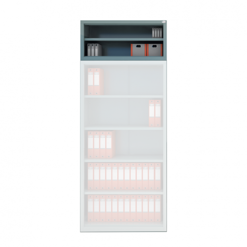 Nízky nadstavec nad kovový regál šírky 1000 mm na prehľadnú archiváciu zakladačov. Výhodou výrobku je robustná konštrukcia pri zachovaní jednoduchého prístupu k dokumentom. Police sú nastaviteľné po 25 mm.