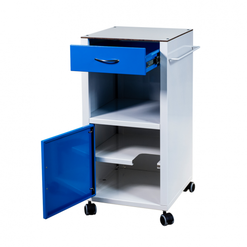 Kovový nočný stolík vhodný pre zdravotnícke a ošetrovateľské organizácie. HPL doska stola a kovová konštrukcia zabezpečujú jednoduchú údržbu hygieny a čistoty. V oddelení je priestor na fľašu. Skrinka je na kolieskach, 2 brzdené. Za príplatok je možné objednať aj s držiakom na obuv. Ohľadom dostupných farieb nás prosím kontaktujte.