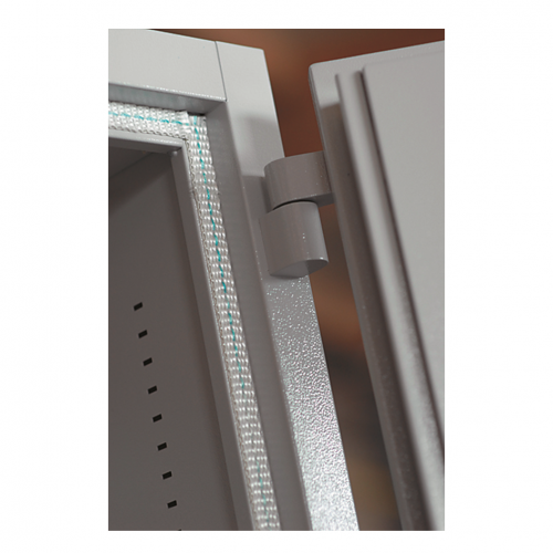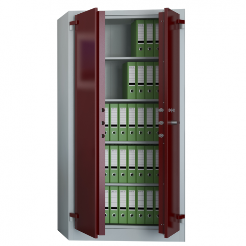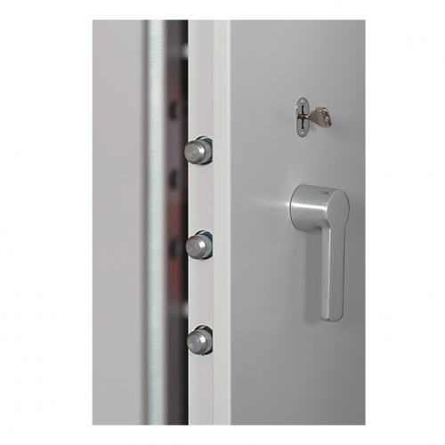 Masívne dvere s viacbodovým uzamykaním a bezpečnostným zámkom kategórie A. Možnosť ukotvenia do podlahy. Široké doplnkové vybavenie a zámok na kód za príplatok. Skriňa je zváraná, nie je nutná jej montáž, čo jej dodáva pevnosť a stabilitu.