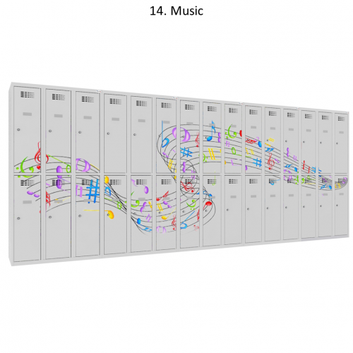 Kovový šatník, ktorý má krátke dvere s potlačou; šírka 1200 mm. Potlač je rezistentná voči UVA a UVB žiareniu a vyznačuje sa zvýšenou odolnosťou proti mechanickému poškodeniu, napr. poškriabaniu. Nami dodávaná špeciálna UV potlač je neporovnateľne odolnejšia ako fóliový polep a štyrikrát odolnejšia ako štandardná potlač. Farebná úprava povrchu je trvácna a vyznačuje sa veľmi živými farbami. Šatňové skrine s potlačou na dverách sú vhodné pre školy a organizácie, ktoré chcú neobyčajným spôsob zdieľať svoje posolstvo alebo len jednoducho oživiť svoje priestory, prípadne upútať jedinečným firemným vizuálom.