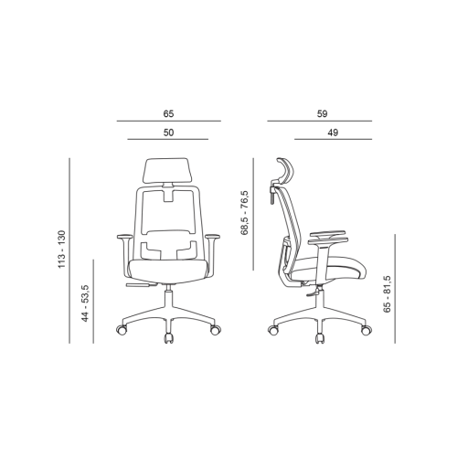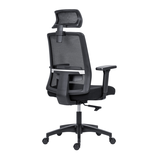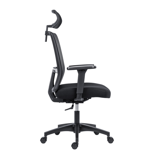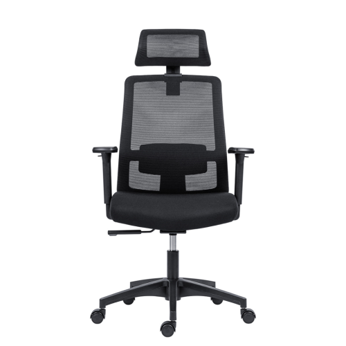 Kancelárska stolička so sieťovaným operadlom a podhlavníkom. Stolička má synchrónny mechanizmus s možnosťou plynulej zmeny uhlu operadla a sedáku. Polohy sú aretovateľné v dvoch pozíciách. Nastavenie tuhosti mechanizmu podľa hmotnosti užívateľa je automatické. Podhlavník a bedrová opierka sú výškovo nastaviteľné. Podrúčky s mäkkou dotykovou plochou sú horizontálne a vertikálne nastaviteľné (hore-dole, dopredu-dozadu). Kolieska majú priemer 50 mm a majú gumový behúň, ktorý je vhodný pre všetky druhy podláh. Farba sieťoviny a čalúnenia je čierna. Nosnosť výrobku je 120 kg.