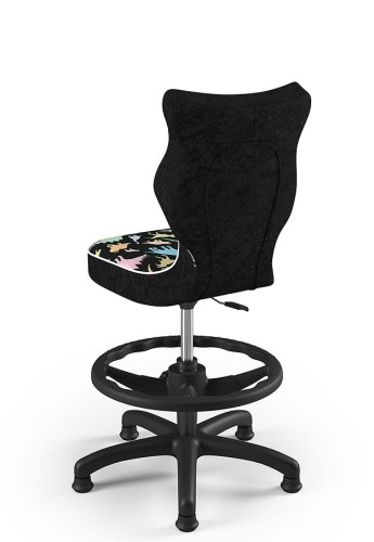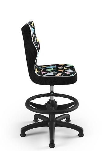 Čalúnená stolička Petit s čiernym rámom a aretačným kruhom je vysoko kvalitný výrobok, ktorý bol navrhnutý a kompletne vyrobený v EÚ. Čalúnenie má dinosaurí vzor. Stolička je ergonomicky nadizajnovaná a podporuje zdravé sedenie. Operadlo je presne prispôsobené tvaru chrbtice. Vďaka tomu je chrbát menej unavený. Stolička núti zaujať zdravú polohu pri sedení, ktorá zároveň poskytuje maximálne pohodlie. Táto stolička je vynikajúcou voľbou pre mladých spotrebiteľov, ktorí ocenia pohodlie a komfort pri dlhšom sedení, či už pri plnení školských povinností alebo pri zábave na počítači. Stolička je vhodná ku stolom výšky 70-82 cm. Produkt je certifikovaný a jeho nosnosť je 110 kg.