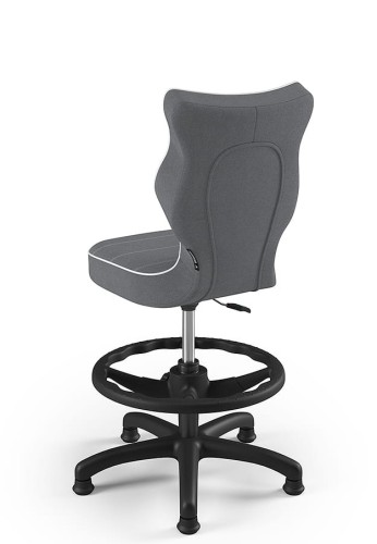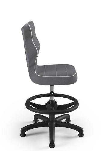 Čalúnená stolička Petit s čiernym rámom a aretačným kruhom je vysoko kvalitný výrobok, ktorý bol navrhnutý a kompletne vyrobený v EÚ. Čalúnenie má šedú farbu. Stolička je ergonomicky nadizajnovaná a podporuje zdravé sedenie. Operadlo je presne prispôsobené tvaru chrbtice. Vďaka tomu je chrbát menej unavený. Stolička núti zaujať zdravú polohu pri sedení, ktorá zároveň poskytuje maximálne pohodlie. Táto stolička je vynikajúcou voľbou pre mladých spotrebiteľov, ktorí ocenia pohodlie a komfort pri dlhšom sedení, či už pri plnení školských povinností alebo pri zábave na počítači. Stolička je vhodná ku stolom výšky 70-82 cm. Produkt je certifikovaný a jeho nosnosť je 110 kg.